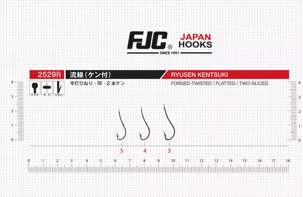 FJC 2529R Ryusen Red Two Sliced Olta İğnesi, Düz Pala, Dövme, Çapraz, Çift Tırnak Olta İğnesi.