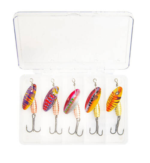 Tatlı Su da Alabalık, Levrek, Turna, Sudak ve Kasna için kullanabileceğiniz ve güzel avlar yapacağınız 5 ayrı modelden oluşan kaşık seti.